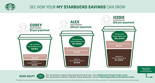 While any Starbucks partner 18 or older can set a goal and save through payroll deductions with Goal Booster, the My Starbucks Savings incentives are only available if you: